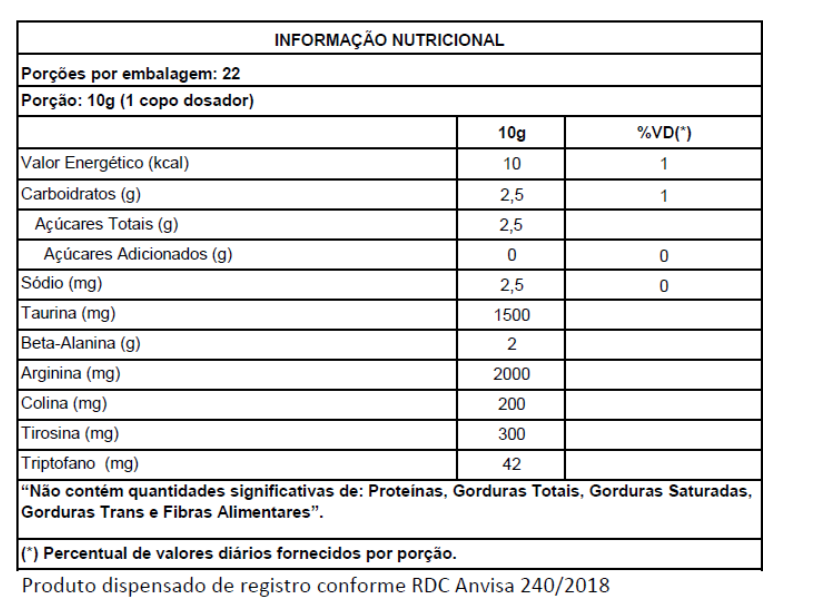 Taurina: Auxilia na recuperação muscular e aumenta o foco.